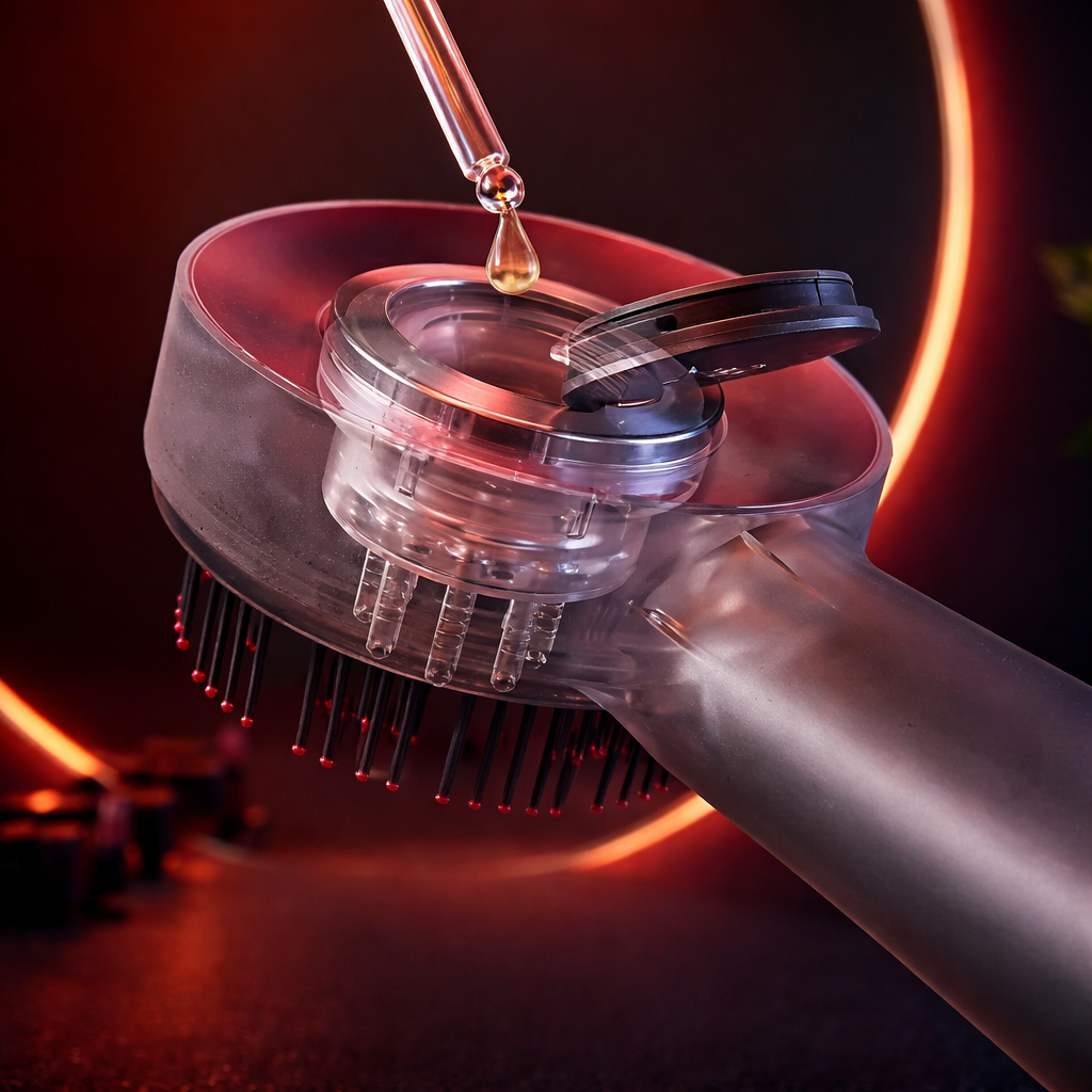 - Un dispositivo capilar que combina luz infrarroja, masaje y aplicación precisa de sérum.