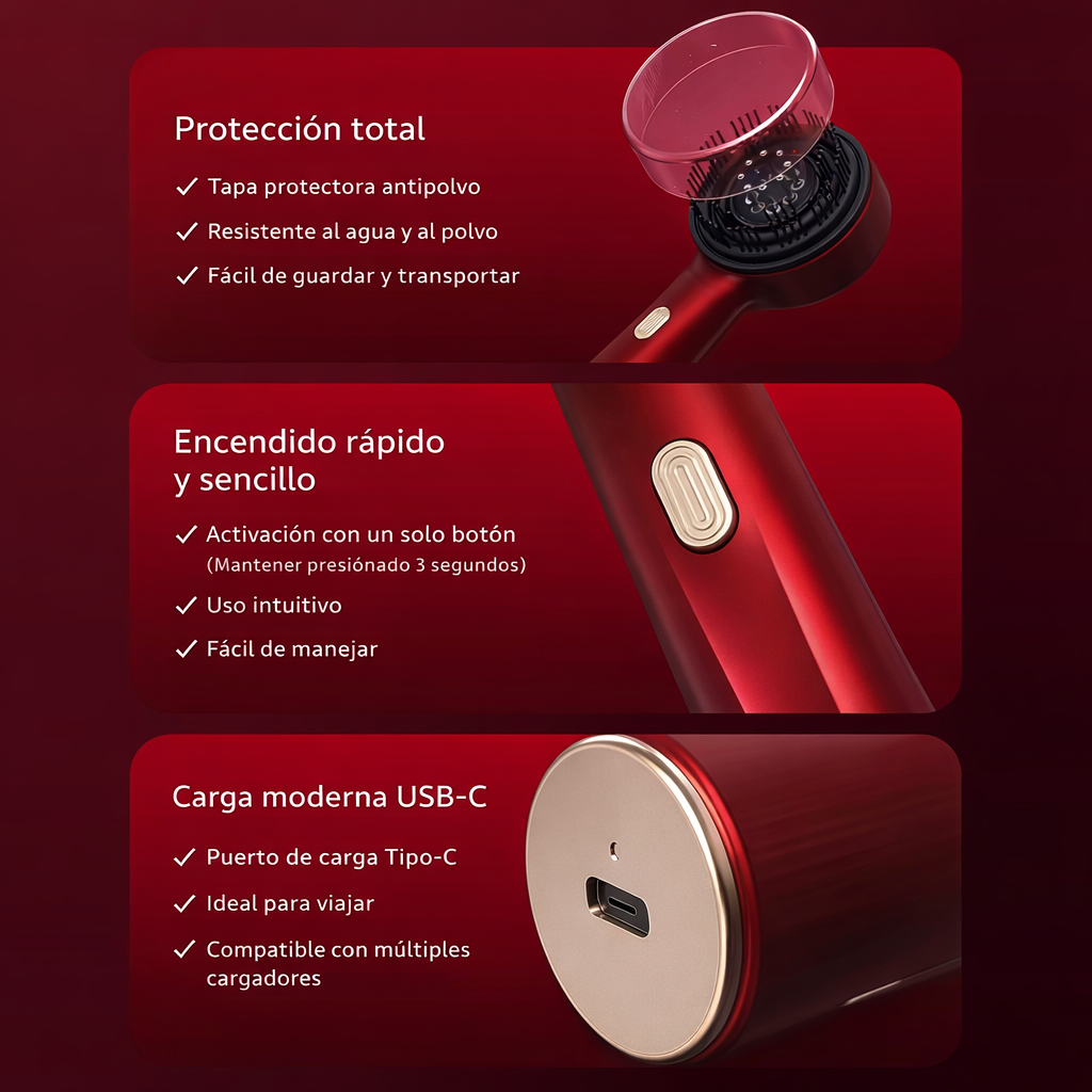 - Estimula el cuero cabelludo mientras distribuye tu tratamiento favorito, mejorando su absorción.